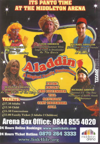 Come and see Suzanne in Panto as Slave of the Ring in Aladdin at The Middleton Arena, Manchester.